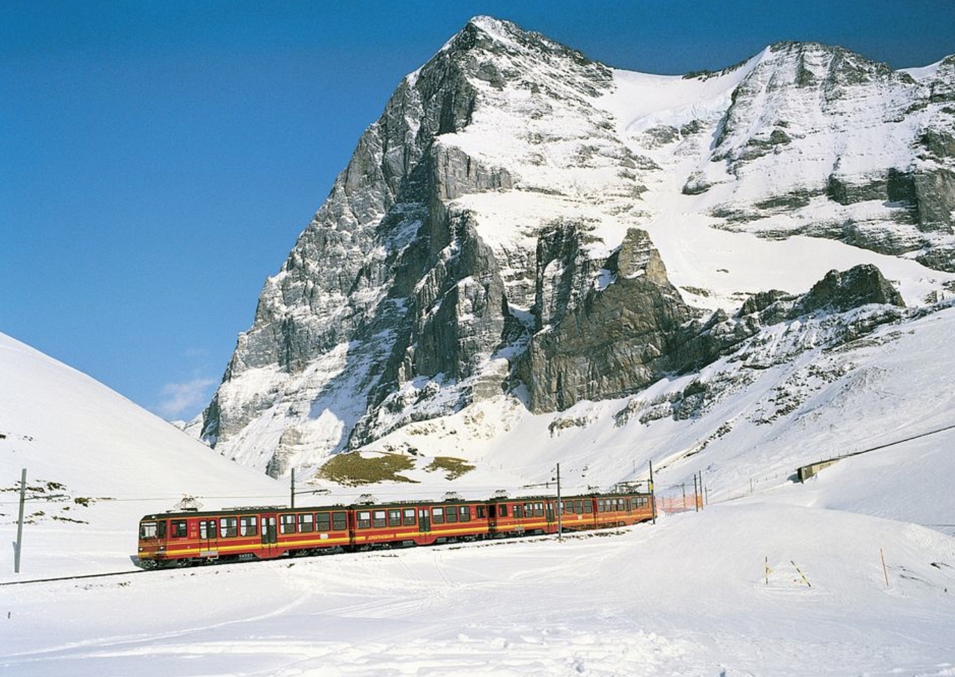 少女峰于1811年才首次由Meyer 兄弟征服。20世紀初少女峰鐵路(Jungfraubahn)建成,用隧道及齒軌鐵路連接少女峰旁,3,454米(11,333呎)高的小少女峰(Jungfraujoch)。位于小少女峰山內(nèi)的車站亦為歐洲最高的火車站,有“歐洲之巔”之稱。少女峰鐵路由山下Grindelwald 開始,婉延經(jīng)過Eiger 的草地,于Kleine Scheidegg 進入隧道。于堅固的花崗巖內(nèi)的隧道雖然只長7 公里,坡度卻達到25%,于1898-1912年花了14年才完成,它有四分之三左右的路段是在冰河底下隧道巖壁里通過,工程十分艱巨。由Kleine Scheidegg 到少女峰車站,上山需時約50分鐘,下山則需要35分鐘。