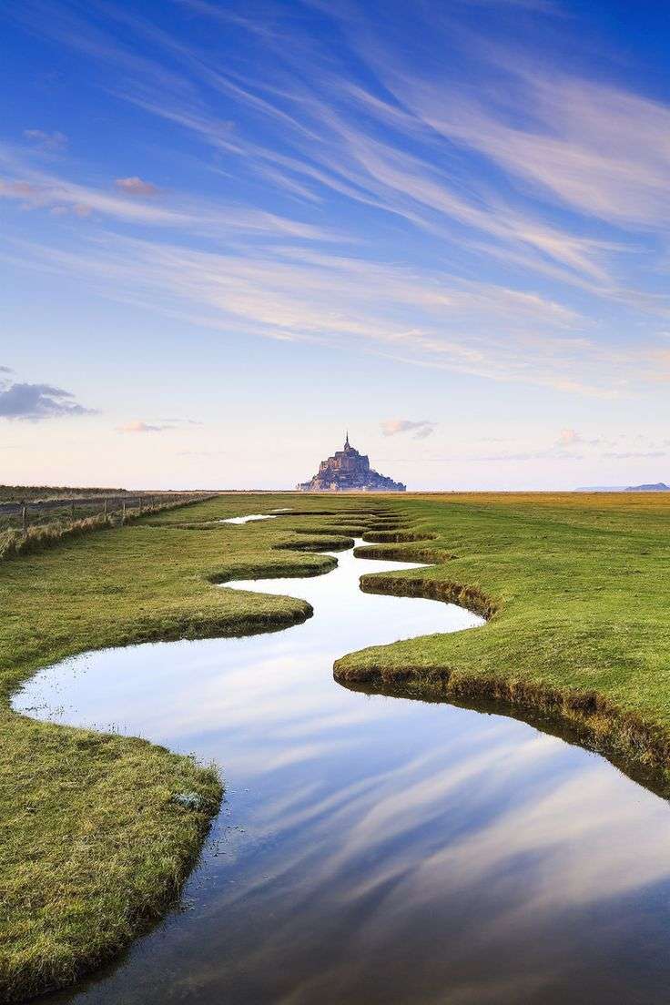 圣米歇爾山是天主教除了耶路撒冷和梵蒂岡之外的第三大圣地,屬于諾曼底地區(qū)。車近圣米歇爾山,可以看見一片極為寬闊的草場,近處藍(lán)天下成群的綿羊,遠(yuǎn)處與草場相銜接的,是一望無垠的流沙。版權(quán)所有山東聊城聊之旅國際旅行社有限公司,轉(zhuǎn)載必究!一座錐形的小山從流沙中兀然拔地而起。最為壯觀的是,山頂上錐形的圣米歇爾教堂建筑群足足比它賴以存在的、直徑約1公里的小山高出近兩倍!教堂哥特式的尖頂高聳入云,頂上金色的圣米歇爾雕像手持利劍直指蒼穹。恍若進(jìn)入人間仙境一般。