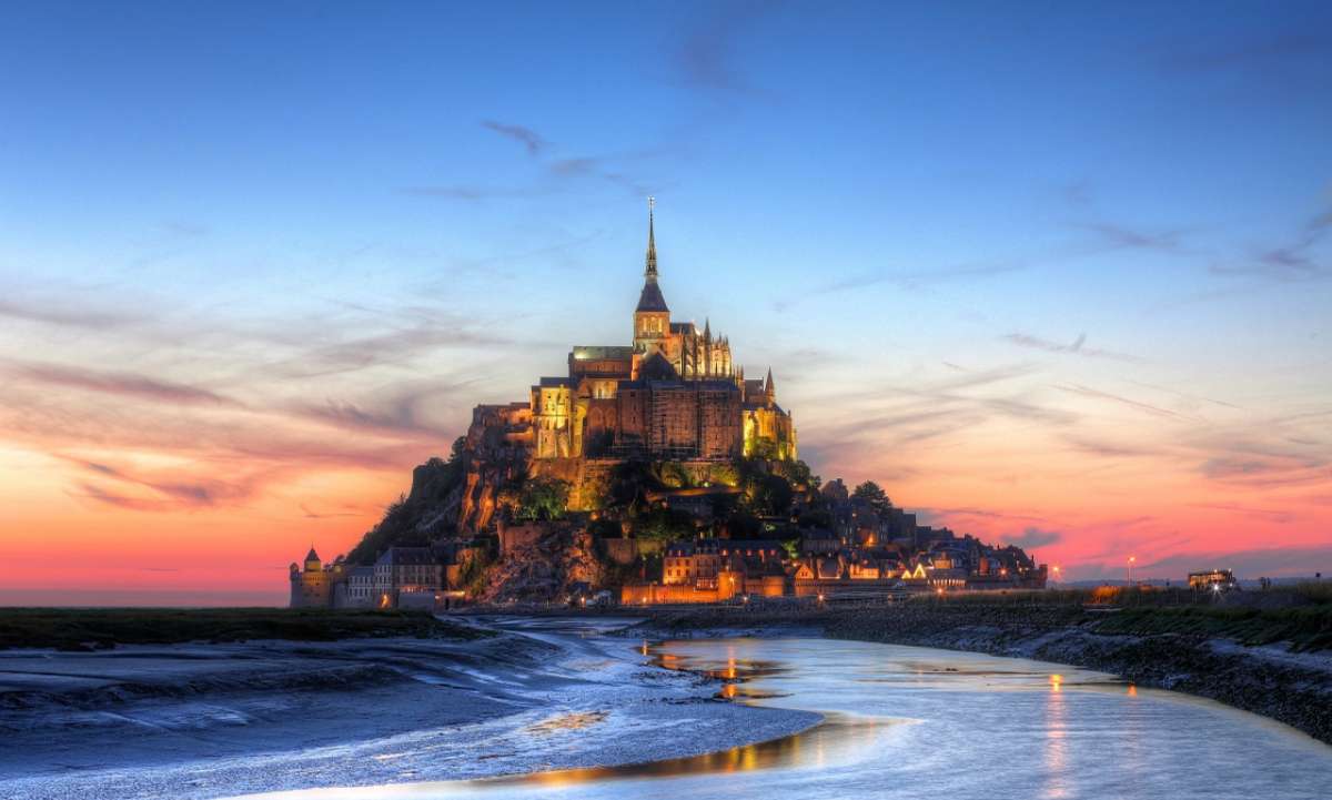 圣米歇爾山(Mont-Saint-Michel)位于法國諾曼底附近,是距海岸約1公里的巖石小島,為法國旅游勝地,也是教徒的朝圣地,山頂建有著名的圣米歇爾修道院。圣米歇爾山及其海灣于1979年被聯合國教科文組織列為世界文化及自然遺產。