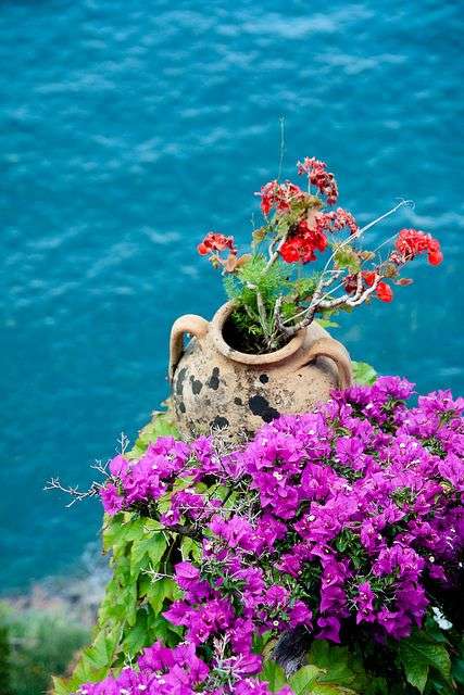 辛波乃別墅隱在木門后,門前則立著一大盆天竺葵。推門而入,姹紫嫣紅,天竺葵如火如荼地盛開著,如今這里已作旅館用,門前長草青青,有極佳海景。無奈只有旅店客人才能入內參觀,悻然作罷。 在園中漫步,進入一間圓頂小亭,四下點綴著粉色花,十分賞心悅目。版權所有山東聊城聊之旅國際旅行社有限公司,轉載必究!往前,出現一道回廊,這才拍案叫絕,原來辛波乃別墅的靈魂在此——整個阿瑪菲海灣盡收眼底,白色羅馬石像,火紅天竺葵。 海風撲面吹來,遠山黛淺,近岸煙波浩瀚,適才一番陡坡蝸行,只是為此刻臨絕頂,果然眾山皆小,映日花兒別樣紅。