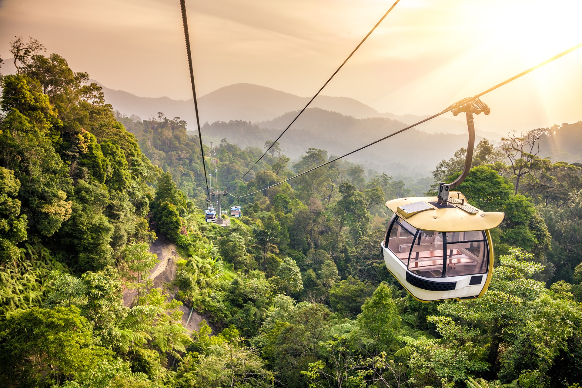 云頂纜車從位于梧桐再也的云頂纜車站出發,直達美星酒店。云頂纜車由馬來西亞第四任首相拿督斯里馬哈蒂爾·本·穆罕默德醫生于1997年2月21日主持開幕。云頂纜車以每8人一車廂并在一小時內載送2000名乘客上山。它的極速為每秒6公尺,只需大約15分鐘便能完成3.38公里長的登山路程。隨著纜車的緩緩上升,馬來西亞特有的奇花異草,以及各種只有熱帶才有的植物、動物和鳥類躍然眼前。往往纜車坐到半山腰就能看到云霧繚繞,如入仙境,到了山頂,室外也經常是云里霧里,看來“云頂”這個名字確實也是有點說法的。