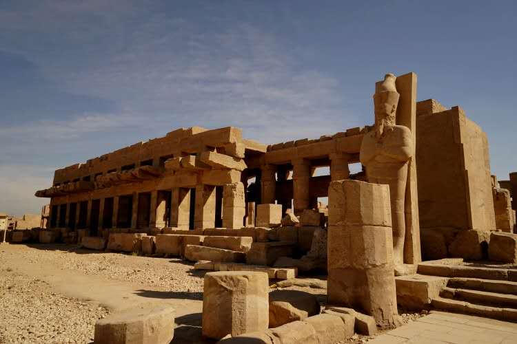 遺址占據(jù)當時底比斯東城的北半部。通過斯芬克斯(見獅身人面像)大道與南面1千米的盧克索相接,那里另有一座阿蒙神廟。由于中王國和新王國各朝都是從底比斯起家而統(tǒng)治全國的,底比斯的地方神阿蒙神被當做王權的保護神,成為埃及眾神中最重要的一位。這里的阿蒙神廟也成為全國最大最富有的神廟。