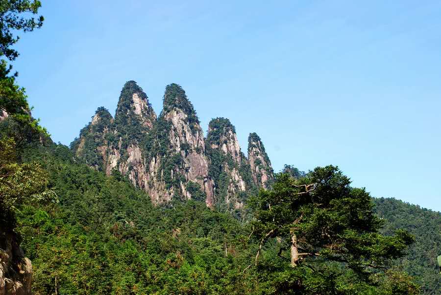 中文名五指峰地點井岡山得名原因因山峰并列如五指海拔1586米地理位置位于井岡山市茨坪西南面六公里處氣候條件亞熱帶季風氣候別稱杜鵑山。