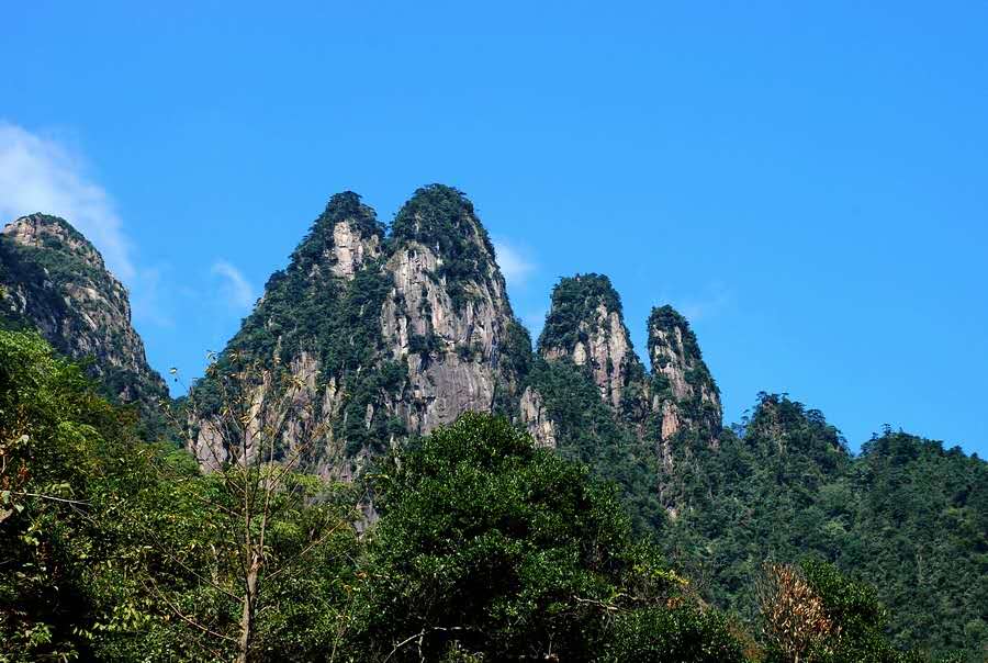 五指峰(井岡山主峰杜鵑山)山峰并列如五指,因而得名,位距茨坪西南六公里,海拔1586米。是井岡山的象征。井岡山革命根據地紀念章和一百元人民幣背面主景,就是以她的模樣繪制而成的,故有中國最值錢的山峰之稱,有人說到此一游必將帶來滾滾之財源。這里山高林密,地域寬闊。山洞遍野,回旋余地大,是歷來兵家藏龍伏虎之地。