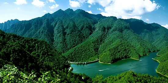 井岡湖(群巒湖)是一座攔江筑起的人工湖,塊石漿砌的雙曲拱壩,高92米,稱之為中國吉尼斯紀錄。湖面62萬平方米,蓄水1870萬立方。從南湖上船,經中湖,泛舟穿林,可駛向西湖和北湖,全長5.3公里。整個湖周圍,林木密密層層,盤根虬枝,濃蔭如蓋。湖北的峽谷,長2500米。形成一根巨大的扁擔,稱之為“扁擔崖”。崖頂端奇峰怪石,有幾株臺灣松點綴著,青云繞繞,婀娜多姿,活像一幅與天相銜的中國國畫。從主峰大壩碼頭上游輪,可游覽井岡湖,至水口石門碼頭上岸,又可游覽水口各景點。