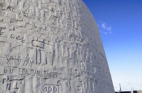 令人稱奇的是,無論從哪個角度看,亞圖主體建筑都像是一輪斜陽,象征著普照世界的文化之光。在外圍的花崗巖質地的文化墻上,鐫刻著包括漢字在內的世界上50種最古老語言的文字、字母和符號,凸顯了文明蘊藏與文化氛圍的構思和創意。