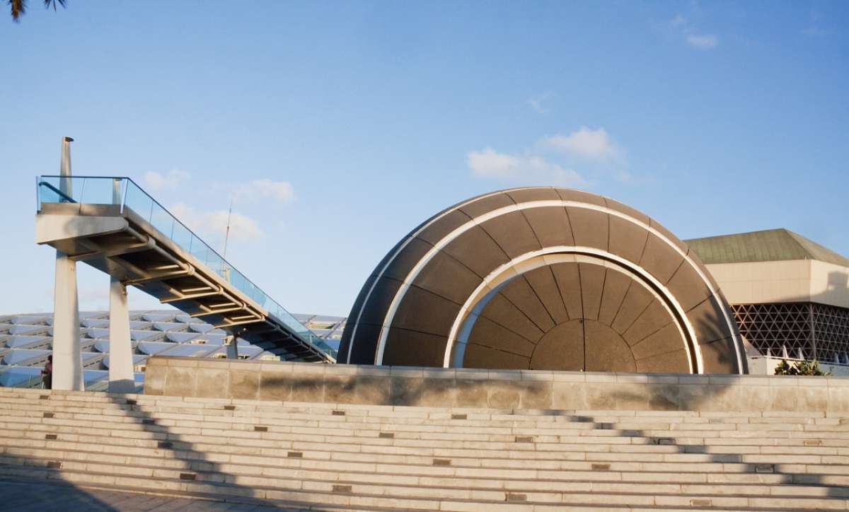 今天的亞歷山大圖書館的主體建筑為圓柱體,頂部是半圓形穹頂,會議廳是金字塔形。圓柱、金字塔和穹頂的巧妙結合渾然天成,多姿多彩的幾何形狀勾勒出該館的悠久歷史。