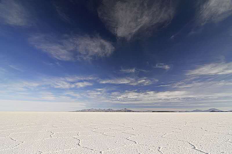 在高原南端有一些冰川融化時留下的鹽湖,而在1萬年前最后一個冰期(第四紀(jì)冰期)結(jié)束時,湖水已逐漸消失。高原上最大并最令人印象深刻的就是烏尤尼鹽沼(Salar de Uyuni)。每年夏季(雨季12月至次年1月),它被雨水注滿,形成一個淺湖;而每年冬季(旱季7月至10月),湖水則干涸,留下一層以鹽為主的礦物質(zhì)硬殼,中部達(dá)6米厚。人們可以駕車駛過湖面。尤其是在雨后,湖面像鏡子一樣,反射著好似不是地球上的、美麗的令人窒息的天空景色,這也就是傳說中的“天空之鏡”。由于面積空曠,極其光滑(覆蓋著淺水),同時又極平整(海拔差異極小),地表反射率極高,使阿塔卡瑪成為一個理想的測試和校準(zhǔn)地球遙感衛(wèi)星之地。