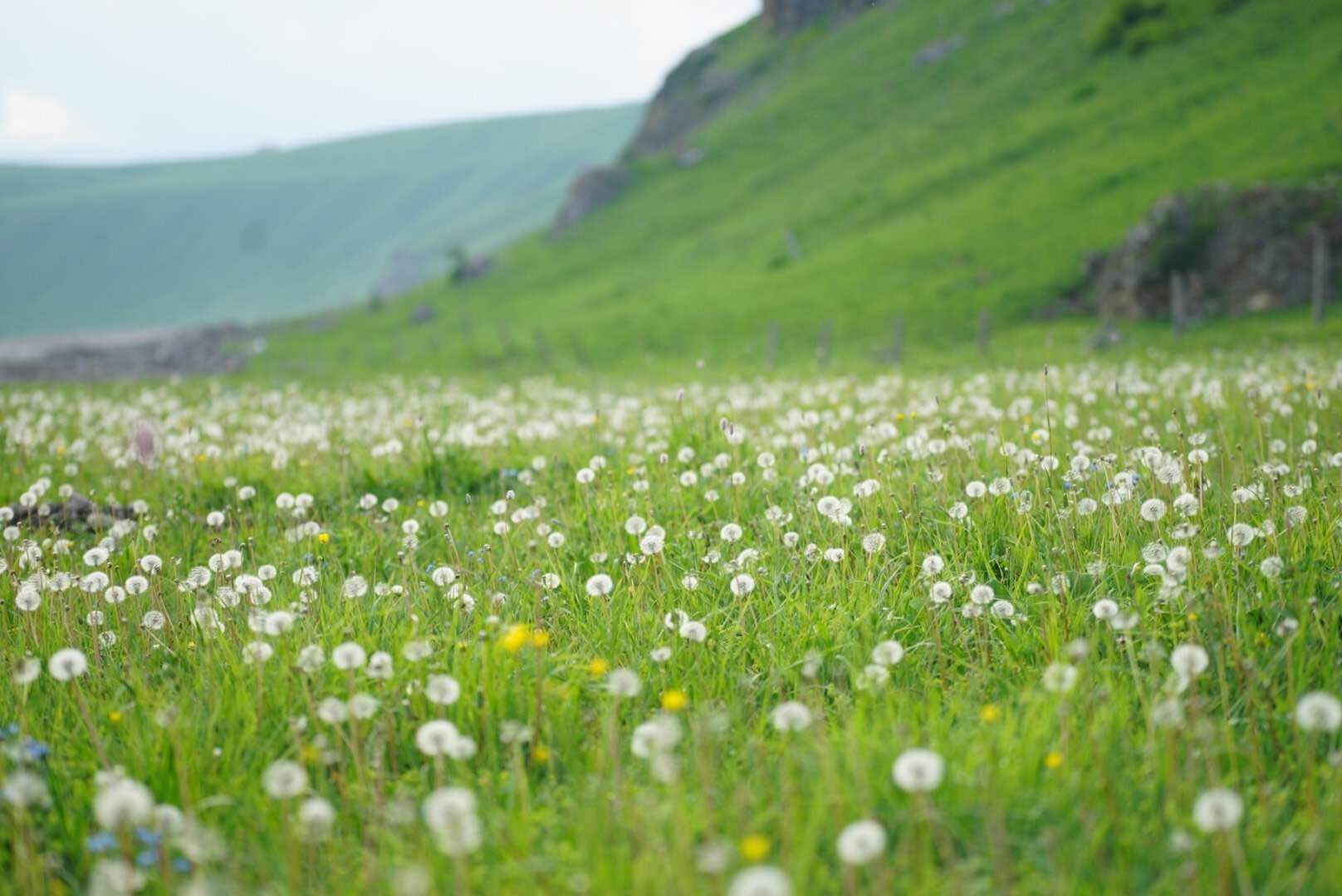 進入澤克臺山谷之后,風景越來越好。芳草萋萋,見到了盛名在外的天山紅花。