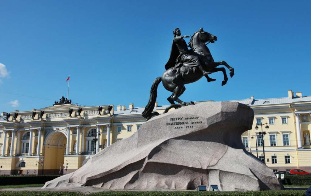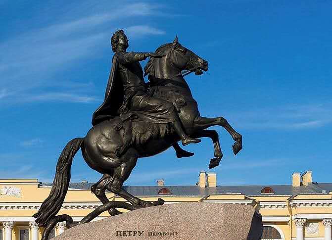 銅像的底座是40噸重的一整塊花崗石,是在圣彼得堡芬蘭灣處找到的,用了5個月的時間運到這里,在花崗石上面刻著“葉卡捷林娜二世紀念彼得大帝一世于1782年8月”。版權所有山東聊城聊之旅國際旅行社有限公司,轉載必究!現在大家看到的彼得大帝所騎的馬代表俄羅斯,它雙腳騰空,好像要沖破一切阻力勇往直前,在馬掌下有一個踏死的大蛇,它代表了一切阻止彼得大帝改革維新的守舊派,正如雕塑展示的一樣,彼得大帝沖破了重重阻力,在這片沼澤地建起了這座美麗的城市圣彼得堡,并建都于此,把落后、封建、貧窮的俄羅斯,帶向了海洋與繁榮。