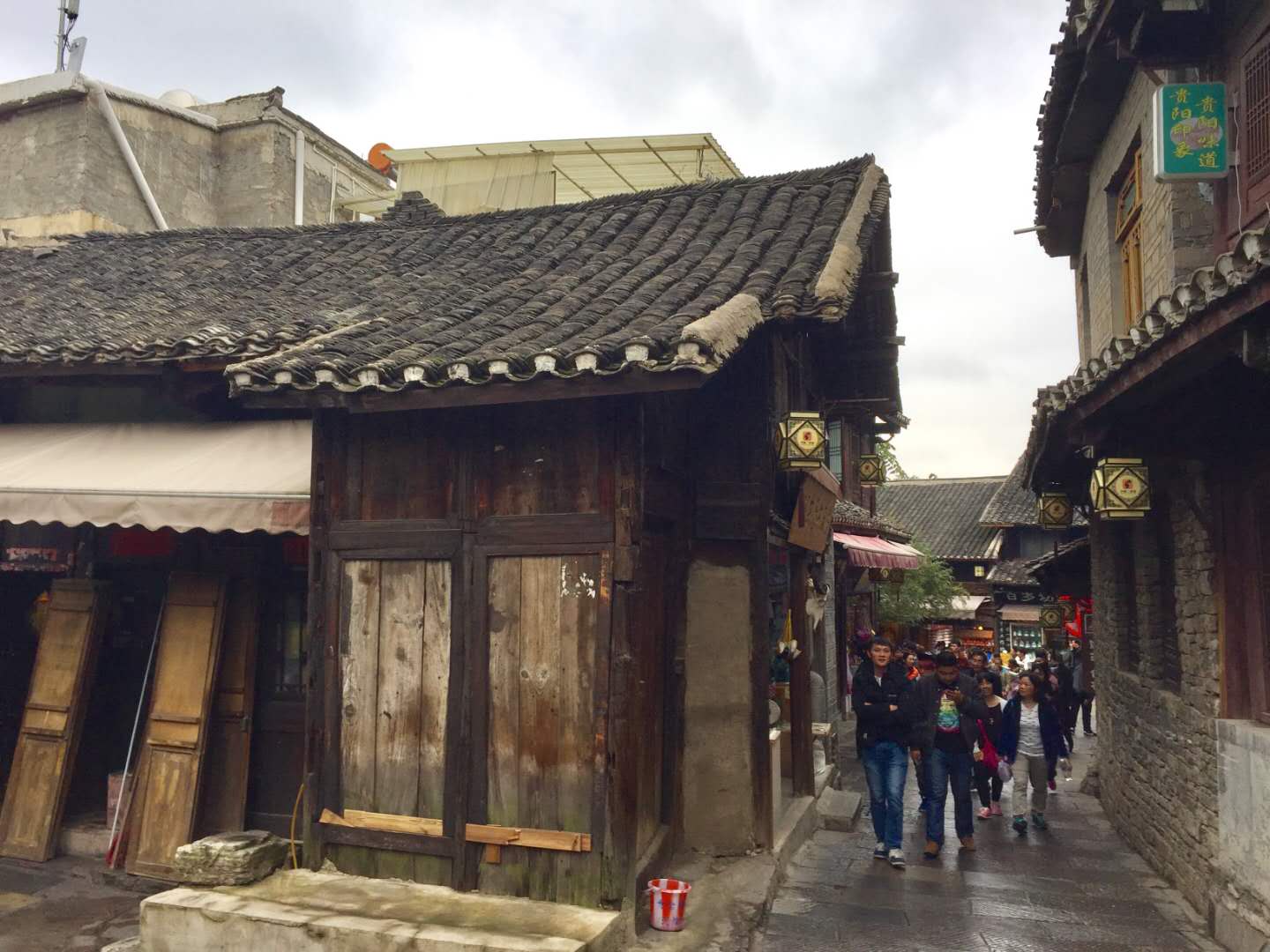 重檐懸山式民居完全是人體仿生學與商業經營兩者之間的巧妙結合,青巖古鎮的民居表面看起來和其他明清建筑并無明顯不同之處,青瓦石墻、古樸滄桑,但仔細觀察,卻有著自己非常鮮明的個性和地域色彩。貴州素來有“天無三日晴”之說,下雨,總不能耽誤了生意,精明的生意人們經過反復地經驗和教訓的積累,青巖鎮的典型民居孕育而生。門面作為商鋪的民居,一般會顯得高大一些,光有第一重檐是經不起風吹雨打的,更何況還有帶著風的偏山雨,但總不能把門關上了不做生意吧,就再加上一重檐,很好的保護了柜臺,這樣再大的雨也不怕了。如果再仔細觀察,就會發現那雙重檐就像人的眉毛和睫毛,保護眼睛的是睫毛,而不是眉毛,眉毛起到是一種裝飾作用,這種仿生學的商鋪式民居建筑,充分體現了古鎮勞動人民的智慧和善于創新的精神。這種運用人體仿生學,獨具特色的多功能民居建筑即便放在全國范圍看也實屬罕見。
