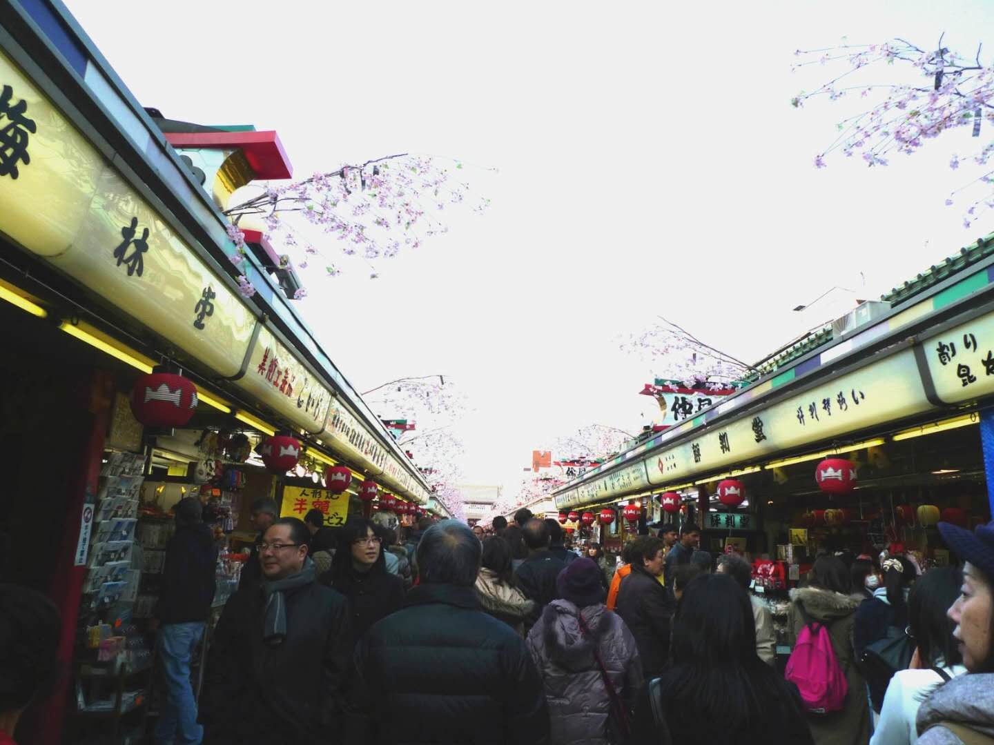 仲見(jiàn)世商業(yè)街從雷門(mén)延伸到淺草寺主要場(chǎng)地,大約250米長(zhǎng)。