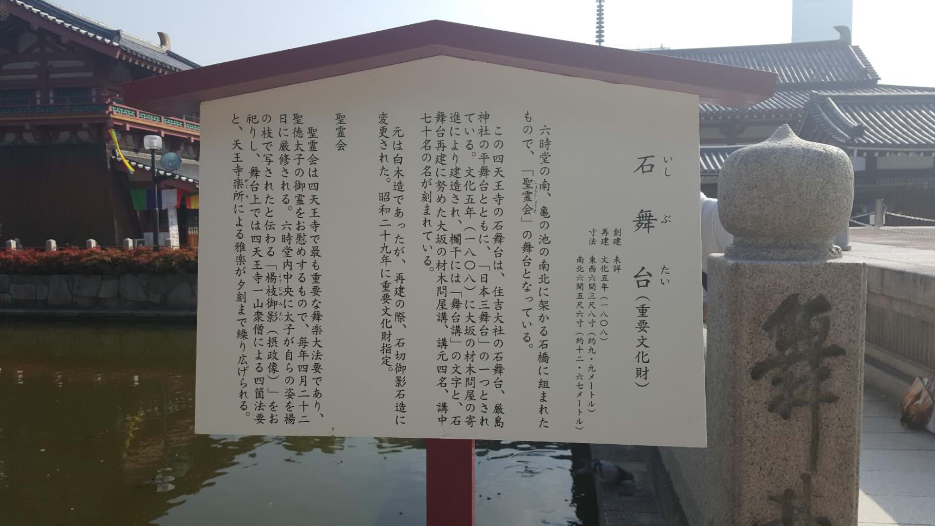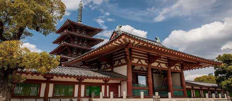 該寺建于離大阪灣不遠的地方,而大阪灣在貿易與運輸領域中扮演著重要的角色,這個具有戰略意義的地理位置使日本得以向全世界展現其實力與繁榮。后來,該寺盡管經歷過多次重建,但建筑風格、布局與最初相比并沒有太大的變化。