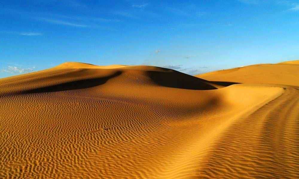 銀肯塔拉沙漠沙丘連綿分布,景色壯觀,嫩黃色的沙漠,一望無垠,景區內有東西500米長的沙灣,呈彎月狀,版權所有山東聊城聊之旅國際旅行社有限公司,轉載必究!沙丘高度110米,坡度為40度,從沙丘頂部滑下,沙子會發出轟鳴聲,形成著名的“響沙”奇觀,是罕見的自然景觀。
