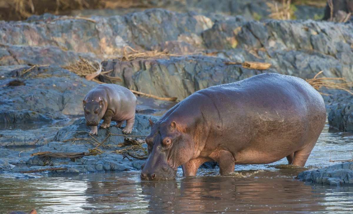“食草演替”接下來的就是水牛河馬,它們也會吃掉和踐踏森林和河流邊緣地帶的大片草地。在類似地區居住的還有大型羚羊,如轉角羚羊、東非狷羚和黑斑羚。當它們開始在這些森林和河流的過渡地帶走來走去(100公里范圍內)尋找水源和牧草的時候,就預示著大遷徙的即將到來。