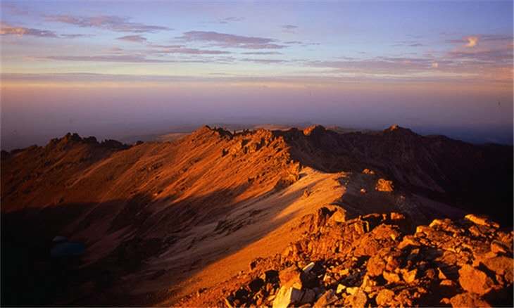 肯尼亞山是東非大裂谷最大的死火山,位于肯中部赤道線上,北距內(nèi)羅畢約230公里。