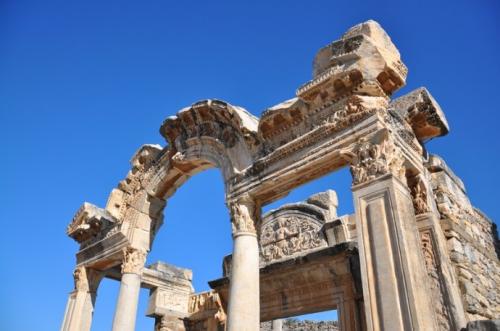 早在公元前6000多年的新石器時代,以弗所已有人類居住的痕跡。以弗所于公元前10世紀建城,早期是古希臘城市。在古羅馬時期很長一段時間內,它都是羅馬帝國中僅次于羅馬的第二大城市。公元一世紀的時候這里的人口已達二十五萬,而此時,龐貝已泯滅在維蘇威火山的灰燼中。該城幾經沉浮,最終在15世紀衰落,再也回不到昔日的輝煌了。還好,留下的遺跡已足夠讓我們一瞥舊日榮光。