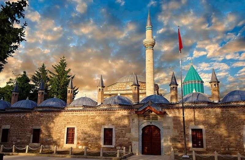 梅烏拉那陵墓使用鮮艷的綠顏色的瓷磚,是孔亞最有名的建筑。陵墓展示著梅烏拉那的著作和與教團有關的工藝品。每年12月上旬舉行盛大的旋舞祈禱儀式。