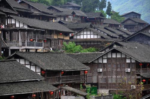 在龔灘,冉是大姓,冉家院子,已有三百年歷史。它四周封閉,進入其中,有置身徽派民居的感覺。但是與徽派民居不同,它一面是開放的,吊腳樓廊伸向街面,正房和廂房都是穿斗式結構,都是龔灘地道的建筑風格。