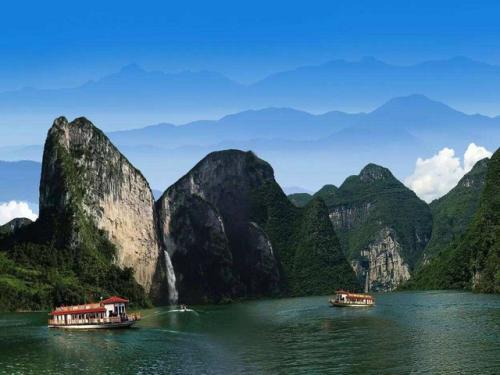 大清江國(guó)際旅游度假區(qū),自恩施市汾水河至巴東縣水布埡,全長(zhǎng)87公里,是清江最美、最具原生態(tài)特色的河段。全程分為紅花峽、千瀑峽、蝴蝶峽三個(gè)峽段,峽谷兩岸屏巒如畫,石峰雄奇,飛瀑流泉。兩岸的吊腳樓和土家田園掩映在青山碧水間,風(fēng)景迷人,風(fēng)情醉人,被中外游客贊譽(yù)為土家最美的河。