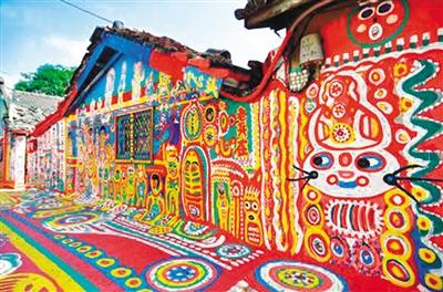 旅游傳奇景點(diǎn)「彩虹眷村」,起源于住在臺(tái)灣臺(tái)中市南屯區(qū)嶺東科技大學(xué)附近有一處舊眷村的八十七歲老榮民黃永阜,因?yàn)椤笩o(wú)聊」而拿起畫(huà)筆彩將眷村內(nèi)的巷弄街道當(dāng)成了天然的畫(huà)布,在上頭彩繪了各式美麗的彩虹線條與可愛(ài)動(dòng)物,不僅染亮了小村,在網(wǎng)絡(luò)上引起熱烈討論,更形成一股參訪風(fēng)潮。因他的用色大膽,構(gòu)圖可愛(ài)并充滿童趣,讓到訪者有如置身彩虹世界,故網(wǎng)友稱此處為「彩虹眷村」。