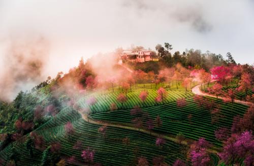無量山櫻花谷,位于云南大理州南澗縣無量鎮德安村委會境內,在云南大理華慶茶業有限公司的茶莊園內,與靈寶山國家森林公園相鄰,距離縣城51公里。北緯24°45' 50" 東經 100°30' 32" ,海拔2175米。花期每年11月底至12月初,25天左右,櫻花谷面積約2000畝。