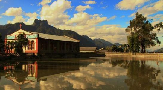 老姆登教堂,青磚墻,紅漆木窗,白鐵皮屋頂,簡單樸素。從外表看,這座教堂并不壯觀,沒有常見的玻璃彩窗、穹頂、和標志性的哥特式尖塔,有的只是長條凳和紅漆木窗,但這更顯出人們信仰的純粹和虔誠。每個星期天(周三、周六晚上八點亦有),周邊鄉村的基督教信徒都會集中在這里做禮拜,他們聚集在這里虔誠的念誦贊美詩,對于那些和著太陽和泥土味道的樸實的人民,上帝就住在他們心里,他們像呼吸一樣自然安詳虔誠的哼出那些歌謠。村民唱圣歌是用傈僳語唱的,傈僳族的文字始自圣經的翻譯,也為怒族所共用。