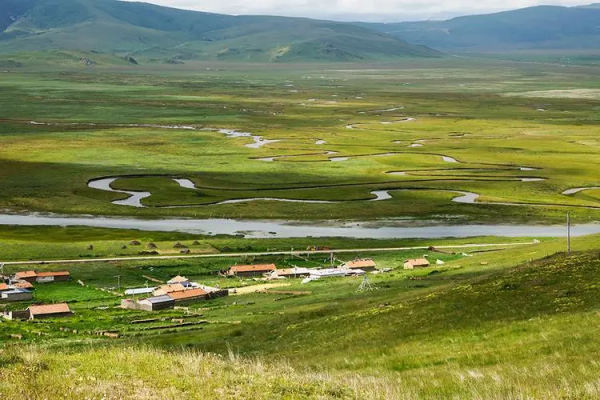 郭莽濕地位于甘肅省碌曲縣尕海鄉(xiāng)213國道旁,海潑3562米,是黃河最大支流洮河的發(fā)源地和水源涵養(yǎng)地,在黃河流域生態(tài)涵養(yǎng)和水源保護(hù)中具有重要意義。郭莽濕地是一個開放式免費景點,就在公路邊。草地上一條500多米長的木棧道通往觀景臺,站在觀景臺上,眼前彎曲的小河,傍水而居的藏族小村莊,風(fēng)輕日朗,白云朵朵,綠草如茵經(jīng)幡飄揚,好似一幅美麗的生態(tài)畫卷!