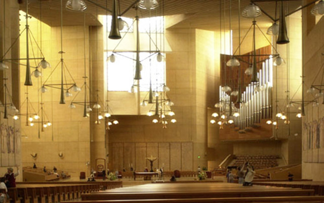教堂占地二千余平方尺,頂部為鐘樓。禮堂高大寬敞,可容二百多教友同時參加儀式;圣壇上置圣母像,據說是從歐洲運來;其兩側有數尺高的天使像,造型栩栩如生,是為紀念建堂百周年而置。