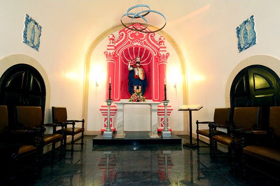 這座精致的小堂于1629年興建,于1740年重建于媽閣炮臺上, 即在澳門這個小城的尾端。當時,小教堂巳是一所葡式旅館建筑物的一部份,而旅館則建于炮臺的地基上,在這座精致的小教堂擺放圣人雕像及花地瑪圣母,伊莎貝皇后的瓷磚圖像。