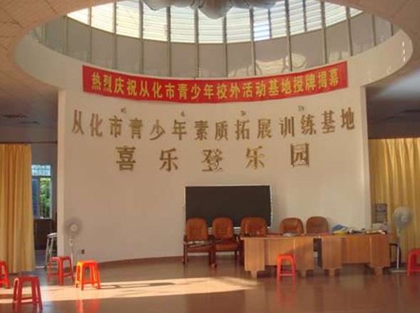 從化市喜樂登拓展訓(xùn)練中心(青少年素質(zhì)拓展訓(xùn)練基地)座落在從化城郊紅旗村(距廣州約70公里,離從化市中心約15分鐘車程),占地350多畝。基地種有優(yōu)質(zhì)荔枝、龍眼、楊梅、黃皮等20多種果樹,各種本地特色農(nóng)作物(紫心蕃薯、香芋、甜玉米等)以及上百種綠化植物,保持著濃郁的鄉(xiāng)村氣息。護(hù)城河邊、竹樓亭閣、果樹田園、風(fēng)光無限、是一個集科普教育、果園旅游,配合青少年素質(zhì)實踐教育為一體的實踐教育基地。