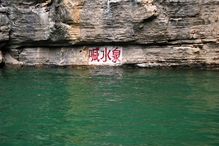 秦王峽東岸有一溶洞,相傳明代有一位姓秦的人,尊皇命于此熬硝監(jiān)制炸藥有功,朝廷封其為秦王,洞遂名“秦王洞”,峽亦名“秦王峽”。峽內(nèi)岸壁陡峭而水流較平緩,千米長(zhǎng)灘,筆直一線。仰望,兩岸山峰高聳,猶似要合抱一般,氣魄十分雄偉;俯看,河水清澈如鏡,偶有魚群游過,引人競(jìng)相捕捉,激起層層水花,于陽光下燦燦閃耀。