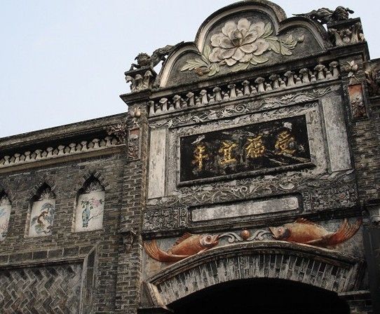 劉氏莊園“小姐樓”。小姐樓位于收租院北,老公館正門內東側。小姐樓為院中之院,院門兩側立柱為朱砂色,門楣上方鑲嵌的長方形白瓷板上有“祥呈五福”四字,最頂部一枝浮雕狀白色牡丹顯得雍容華貴。小姐樓高三層,三樓各面開有大窗,可俯視全院。