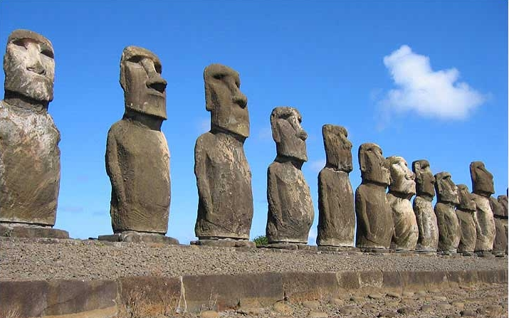 1722年羅格文將軍帶領(lǐng)一幫人登到島上時,發(fā)現(xiàn)島上聳立著許多石雕人像,它們背靠大海,面對陸地,排列在海島的岸邊上。每個石像形態(tài)不同,大小也不一樣。當(dāng)時,羅格文對自己看到的一切感到非常驚訝。此后在1770年,西班牙的航海家岡薩雷斯到了這個島上,1774年,英國的航海測量家?guī)炜嗽俅蔚竭_這里,他們對島上看到的一切,都感到非常驚奇。