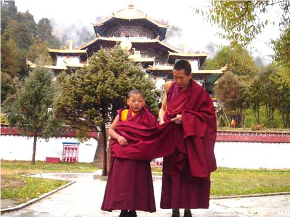 熱振寺的組織機構(gòu)與其他格魯派寺廟不同的是未設(shè)扎倉和康村,寺內(nèi)一切政教大權(quán)均掌握在熱振活佛手中。熱振活佛之下設(shè)堪布1人,主要代理熱振活佛掌管全寺的政教事務(wù),任期不定;堪布之下設(shè)吉米1人,主要掌管全寺財政開支,任期三至四年;吉米之下設(shè)格貴1人,主要監(jiān)督管理全寺僧眾的戒律和寺規(guī)的熱行,有權(quán)處置寺內(nèi)喇嘛,任期一年;格貴之下設(shè)聶巴1人,主管寺廟的錢糧等財物,任期三至四年;聶巴之下設(shè)恰瑪1人,主管全寺僧眾放茶等事條,任期不定。熱振喇章又分為熱振寺喇章和拉薩章兩處。熱振活佛之下設(shè)扎薩1人,亦稱“達喇嘛”,此職只有攝玫活佛才有,并受中央敕封任命,主要代替熱振活佛管理兩個喇章的一切事務(wù)。熱振活佛任“攝政”期間,扎薩隨活佛住拉薩喇章;扎薩之下設(shè)第強5~7人,主要管理喇章中的經(jīng)濟收支;版權(quán)所有山東聊城聊之旅國際旅行社有限公司,轉(zhuǎn)載必究!第強之下設(shè)聶巴1人,即喇章的財產(chǎn)保管員。熱振活佛身邊還設(shè)有索本、森本、曲本各1人,主要管理活佛的起居生活、供品法器、宗教活動等。熱振攝政卸任后,則為五品。此外,寺廟及喇章均設(shè)有沖本,主管經(jīng)商,人員不限。熱振活佛任攝政期間,地方政府不供給(配備)馬28匹、隨從35人等。熱振寺剛建寺時只有十五六個人,后來發(fā)展到有扎巴500人,所屬莊園33座、屬寺7座,分別是曲桑寺、甘崗寺、江隆曲定寺、覺丹寺、桑丹林寺、孜聶寺和羊袞寺。還有3個牧場,即當雄的烏瑪牧場、那垅香牧場和果聶牧場。熱振寺的學(xué)經(jīng)制度是以阿底峽的《菩提道燈論》為基礎(chǔ),強調(diào)僧人的戒律,強調(diào)修行次第。修習的主要經(jīng)典是“噶當六論”(即《菩薩地論》、《莊嚴經(jīng)論》、《集菩薩學(xué)論》),后又增加了“茲氏五論”(即《現(xiàn)觀莊嚴論》、《莊嚴經(jīng)論》、《寶性論》、《辨法法性論》、《辨中邊論》)。在該寺改宗格魯派后,仍保留了不少噶當派的教理。