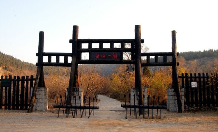 梁山有三關六寨之說,梁山一關為木質(zhì)結(jié)構(gòu),柵欄形式,有濃郁的山寨特 點,也是進入梁山的第一道屏障,根據(jù)《水滸傳》第七十回描寫,第一關由解珍、解寶兩頭領駐守在此。壁壘森嚴,雄渾壯觀,后多次遭到破壞,2002年又進行了修復。當我們走進這條雜草陳槐,曲折逶迤的古寨道,就會從這荒野的氣息中,領略出當年好漢嘯聚山林,八方共域,異姓一家,豪放不羈,快活灑脫的綠林生活情景。