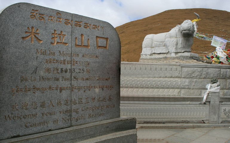 米拉山因其高大雄奇而成為此地藏民心目中的神山,山口上飄撒著許多祭山的經幡和印有經文的紙條,但在山口的最高處,矗立著一座標有“雪域之舟”的西藏耗牛石雕像,石雕的底座格外醒目地刻著一行紅色大字“福建泉州市援建”。在藍天白云下,這座雕像是那樣顯眼,它是米拉山惟一的標志性建筑,它同時也成為米拉山的一個歷史見證,見證著泉州市援藏干部在這里留下的勤勞身影以及和藏族同胞結下的深厚情誼。