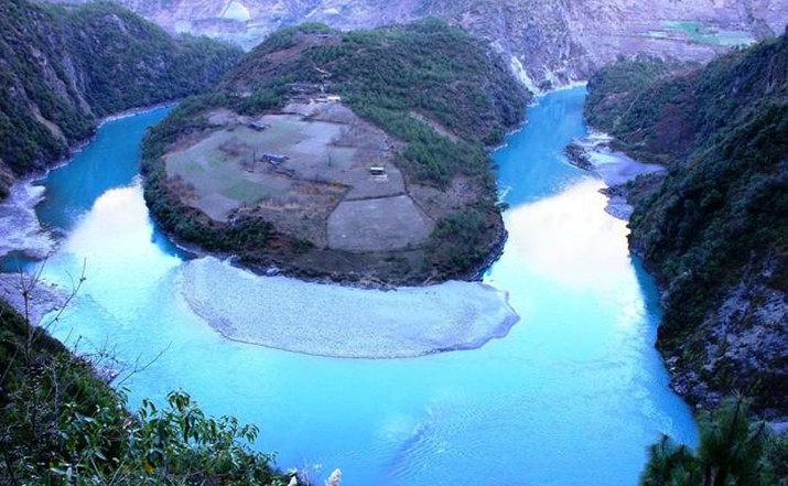 曲南河源于卡瓦格博主峰,由北向南,貫穿雪山,一路匯聚諸多雪山之水,洶涌澎湃奔向怒江。河畔三角形的曲那通壩子,是天然的三角形法源宮(金剛空行母的標(biāo)志),其中有猛利神鐵杵三件。曲南河河水聲是念誦勝樂金剛的心咒和《大般若經(jīng)》、《甘珠爾》、《丹珠爾》經(jīng)文的誦經(jīng)聲。曲南河橫在行人面前,讓人望而生畏,自古外轉(zhuǎn)卡瓦格博行人最怕的就是過曲南通大河。不過這已經(jīng)成為歷史,2000年,紅坡寺扎巴活佛發(fā)動(dòng)云嶺鄉(xiāng)民,集資修建了一座新橋。現(xiàn)在這一座鐵索橋橫跨在大河之上,橋墩也是混凝土澆灌,行人可以安然而過。