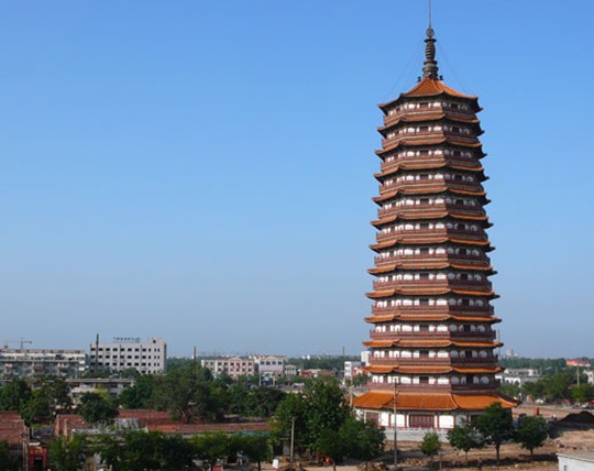 莘縣燕塔坐落于莘縣城中心,是一座存放高僧骨灰的佛塔,舊縣志中稱“古塔”、“寶塔”,外地人則稱“莘縣塔”。莘縣人因塔上棲息一種體型較大的鐵皮燕子而親切地稱為“燕塔”。 莘縣燕塔的歷史可追溯到北宋治平元年(即公元1064年),那一年舉行了隆重的古塔奠基儀式。金天眷二年(即公元1139年),塔終于宣告竣工,一個塔前后竟建了75年。古塔共十三級,為樓閣式青磚木柱結構,塔體八面,每層四門,通高66.7米,塔基南北徑長22米,東西徑長23米,占地面積371平方米。古塔在莘縣城中心矗立了829年,歷經王朝更替,社會變遷,戰事侵襲,巋然不動。