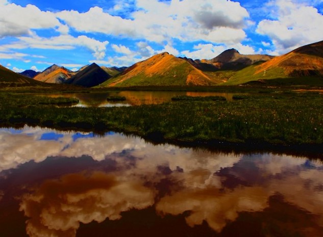 思金拉措,藏語即:具有威力的神湖,當地群眾稱為“財主百龍之王”居住的神湖。位于墨竹工卡縣日多鄉東南邊,距川藏公路(318國道)約6公里,距縣城66公里,距拉薩市區124公里,海拔4500米。地形猶如聚寶盤,四周群峰簇擁。藥材植物就多達幾十種,其中有:雪蓮花、金腰子、冬蟲夏草、黃連花等珍貴的上等藥材。山間隨處可見雪雞、雉鶉、巖羊、鹿、高山嶺羊、香獐等,有時還會看見狼、馬熊、豹等野獸。