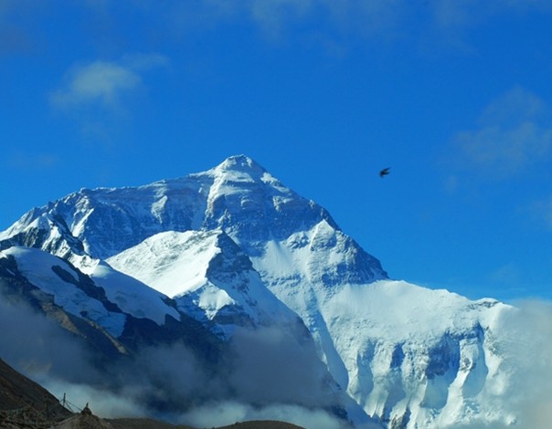 珠穆朗瑪峰是世界最高大的山系喜馬拉雅山的主峰,海拔8,844.43m,為世界第一高峰。珠穆朗瑪為藏語的音譯,意為“女神第三”。山體呈金字塔狀,山上冰川面積達1萬平方公里,最長之冰川達26km。山峰上部終年為冰雪覆蓋,地形陡峭高峻。是世界登山運動矚目和向往的地方。山間有孔雀、長臂猿、藏熊、雪豹、藏羚等珍禽奇獸及多種礦藏。