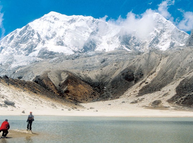 海拔8463米,地處喜瑪拉雅山脈中段,珠峰的東南方,是世界第五高峰。峰體上部覆蓋著厚厚的冰雪,坡谷中發育有巨大的冰川,冰川上多鋸齒型的陡崖和裂縫,冰崩十分頻繁。山腳地勢開闊,水源充足,森林茂密,春天各色杜鵑競相天放、絢麗奪目。