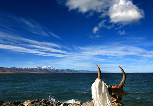 桑丹康桑雪山在藏北高原眾多山峰較為著名,它是西藏二十五座最高的山峰之一,海拔6590米,桑丹康桑雪山位于西藏那曲境內。從高原望去,隱隱可見桑丹康桑的頂峰在陽光的沐浴下現出瑰麗的光芒,仿佛不再冰冷,而是充滿了溫暖與慈祥。在宗教上被相應尊為二十五位仙境居士之一,依附于此山的神叫“夜叉崗布桑布”,是法力無邊的佛法保護神,周圍的眾多峰巒和湖泊都是她的侍從。從南面看,桑丹康桑雪山形似寶座上的國王;從西面看,猶如銀獅躍空;從東面看,儼若晶塔;從北面看,形同銀色幃帳。