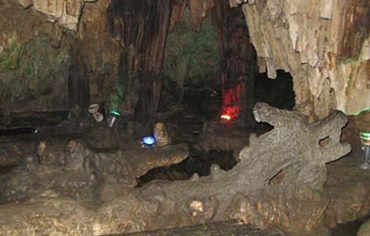 金嘎溶洞,是一個(gè)自然形成的溶洞,位于西藏日喀則江孜縣金嘎鄉(xiāng)。此溶洞以其神奇?zhèn)髡f(shuō)與充滿(mǎn)佛教氣息著稱(chēng)。如同一堆鋒利的兵器,整個(gè)形態(tài)象度母靜坐。洞口寬約8米,高近2米,洞深40余米,自上而下有自然形成的蓮花生大師、南木朗?多吉堆窘大譯師等六個(gè)修行洞,及自然形成的形態(tài)逼真的米拉日巴、十六羅漢、大象、蝎子、天龍、地蛇、月亮、太陽(yáng)等80余種畫(huà)面。