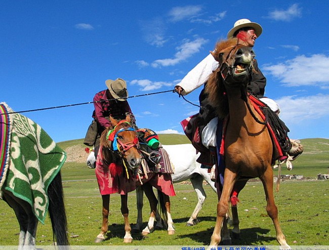 最為引人注目的是牧民的節(jié)日盛裝,特別是少女和中年婦女的穿著,她們大多著華麗昂貴的藏袍,頭上、頸上、手上、腰上到處掛滿了飾品,走起路來叮當(dāng)作響。尤其是在一年一度熱鬧非凡的恰青賽馬會上,整個(gè)羌塘草原的驍勇與彪悍完完全全地展現(xiàn)在白云和藍(lán)天之下,那像珍珠一樣撒落在草原上的頂頂帳篷,那像金子般清脆亮麗的陣陣歌聲,以及格薩爾傳說與現(xiàn)代流行歌曲融洽相伴的種種和諧,止不住您也要歌之舞之,唱之頌之。
