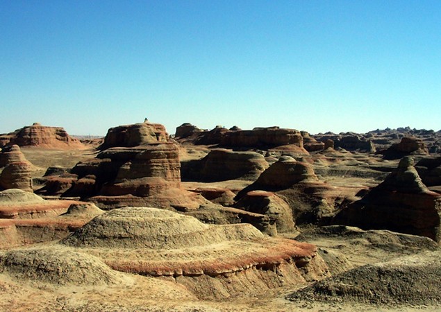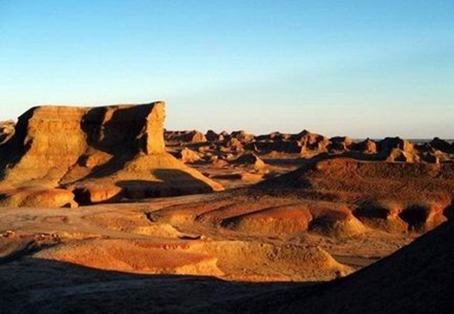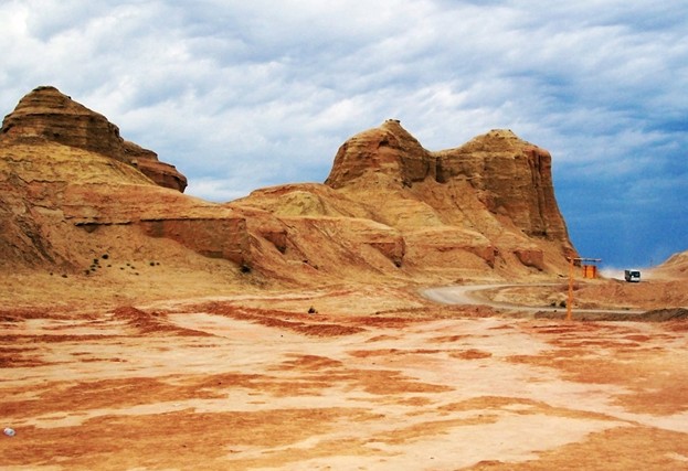 克拉瑪依市北行100公里,在烏爾禾鄉東南三公里,有一處獨特的風蝕地貌,定名為風城,人們習慣稱它為 “魔鬼城”?!澳Ч沓恰笔且黄诺さ孛玻娣e10平方公里,地面海拔350米左右。“魔鬼城”是一片雅丹地貌,面積10平方公里,地面海拔350米左右。雅丹,維吾爾語“雅爾丹”的轉音,原來是維吾爾族對沙土風蝕地貌的叫法,意思是“陡壁的小丘”,后演變為干旱地區風蝕地貌的地理名詞。