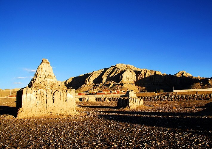 托林寺旁的象泉河谷里,有一列長達數百米的上百座佛塔遺跡。另外,在河谷觀看扎達土林壯觀迷人的日出和日落也是難得的享受。