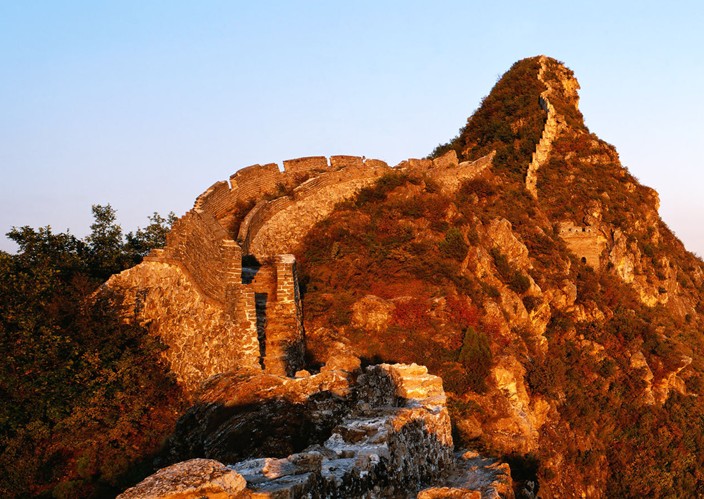 金山嶺長城位于距北京市區140公里密云縣與河北灤平縣交界的燕山山脈中。西起龍峪口,東止望京樓,全線10.5公里。沿線有建筑各異的敵摟67座,烽火臺2座,大小關隘5處,這里長城上敵樓密集,一般50-100米一座,墻體以巨石為基,高5-8米,并設有攔馬墻、垛墻和障墻,形式多樣,各具特色。被譽為“萬里長城,金山獨秀”。