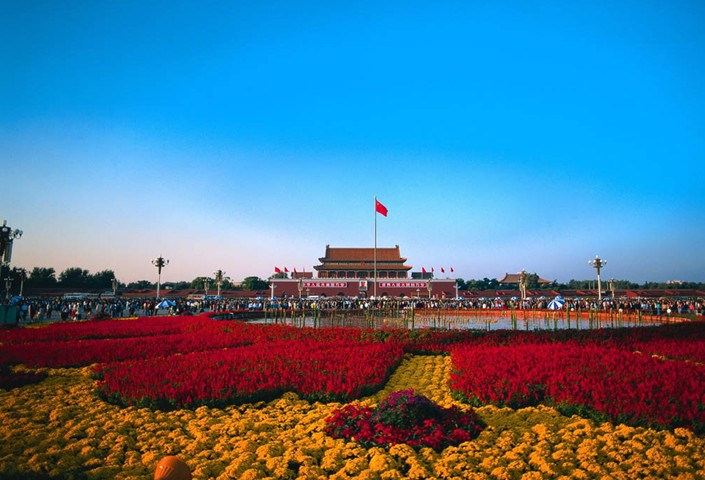 天安門廣場(chǎng)記載了北京人民不屈不撓的革命精神和大無(wú)畏的英雄氣概,五四運(yùn)動(dòng)、一•二九運(yùn)動(dòng)、五 •二○運(yùn)動(dòng)都在這里為中國(guó)現(xiàn)代革命史留下了濃重的色彩。新中國(guó)成立后,天安門廣場(chǎng)拓寬,并在廣場(chǎng)中央修建了人民英雄紀(jì)念碑,后又分別在廣場(chǎng)的西側(cè)修建了人民大會(huì)堂、東側(cè)修建了中國(guó)革命博物館和中國(guó)歷史博物館、南側(cè)修建了毛主席紀(jì)念堂。