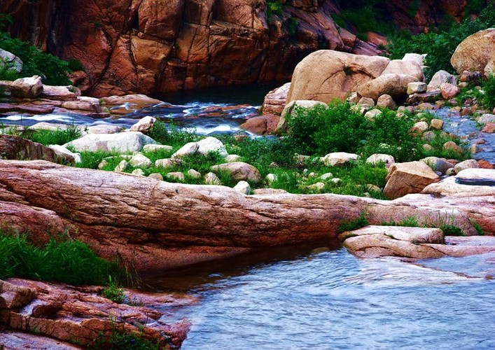 沿開花廠峪村進溝,不斷往前走,能抵達北龍潭,踩著碩大的鵝卵,尤感山路坎坷難行。抬眼望去,倒是滿眼的景色。“兩岸青山相對出,潺潺溪水迎面來”。腳下鵝卵縫里的小溪,靜靜流淌著這山谷的苦衷。明澈見底的溪水里,游來游去著深思的魚兒。溝旁的山上怪石林立,同業的游人不住指指點點,阿誰像王母娘娘的寶座、阿誰像扛槍的兵士、阿誰像企鵝……是啊!這花廠峪的石頭,還真是一景!英姿勃發、千姿百態、肅靜莊嚴……在巨型長塊石頭上,我們看到很多像天書一樣密密層層的小淺坑,隨行的小伙子說是槍彈洞,讓人聯想到毛主席的詩“昔時酣戰急,彈洞前村壁。點綴此關山,今朝更美觀”。進入了峽谷,給人們的第一覺得是奇、特、險。這里四處活動著美,四處彌漫著美。花崗巖、火山巖,經由大天然巧奪天工的雕刻構成了神志各別的天然景象。峽谷內十分分明的巷子,往返往來不斷穿水路的覺得超等棒,看滿山的紅葉,點綴著這怪石林立,真是剛柔相濟、相得益彰。版權所有山東聊城聊之旅國際旅行社有限公司,轉載必究!高山是堅實的臂膀,怪石是傲然的風骨,紅葉是漂亮的衣裳,溪水是流不盡的柔情。這一路走去,就是這山一程水一程,滿眼紅葉滿山情!走至岔路口,是一片大石頭,大得驚人,有的像床,有的像房,有的就像一大片平地,水石相依。坐在那片大石頭上野餐是最美但是的事。